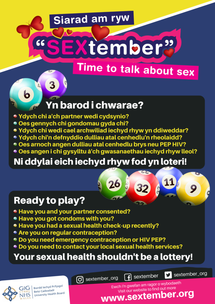 SEXtember is Betsi Cadwaladr University Health Board’s annual sexual health campaign, which promotes awareness around sexual health matters during the month of September.